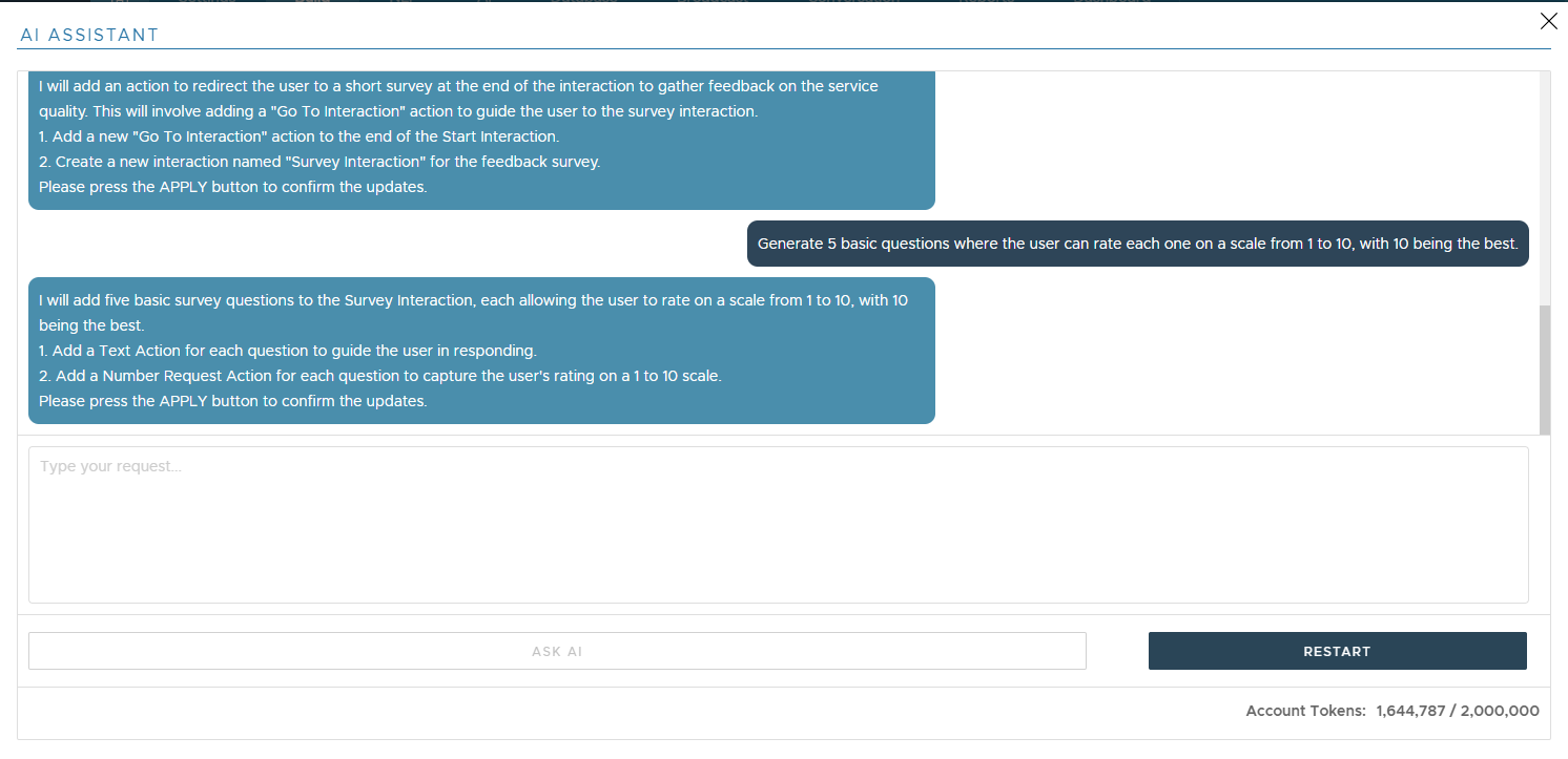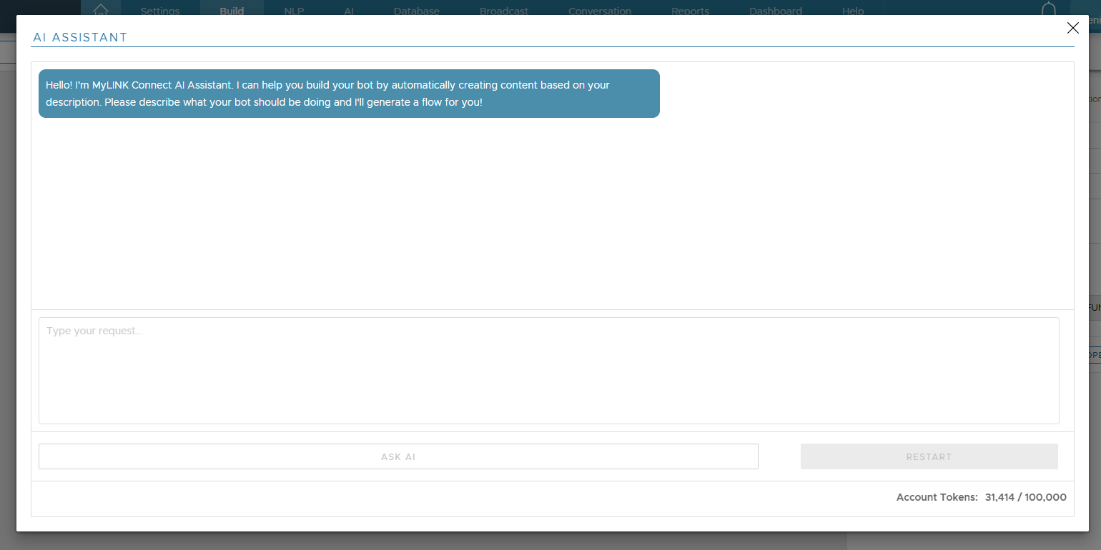 You must have a sufficient number of Account Tokens to use this feature. Without enough tokens, interaction with the AI Assistant will be disabled.