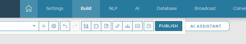 On the Build page, if your license includes AI Assistant access, you’ll see a new AI ASSISTANT button next to the PUBLISH button of your bot